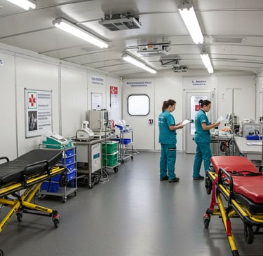 Equipe mínima: médico, enfermeiro e técnico em enfermagem;